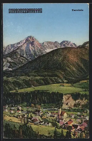 AK Tarvisio, Ortsansicht und Berge aus der Vogelschau