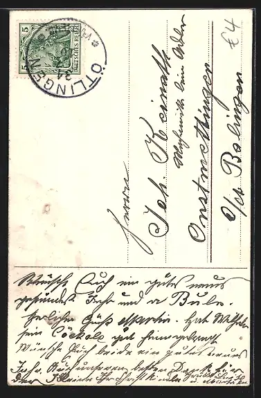 alte Ansichtskarte, gelaufen 1910, Abriebspuren obere Ecken, guter Zustand