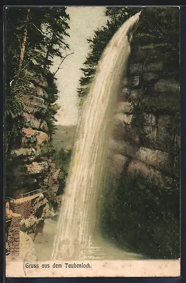 Personenbezogene Daten auf der Rückseite der Karte wurden durch blauen Textmarker unkenntlich gemacht. Die blauen Stellen sind auf die Vorderseite durchgeweicht und wirken sich negativ auf das Postkartenfoto aus