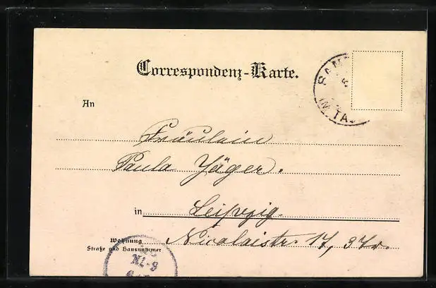 alte Ansichtskarte, gelaufen, Briefmarke entfernt, guter Zustand