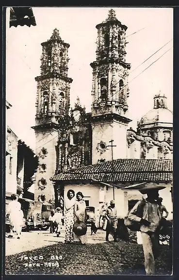 AK Taxco, Kirche mit Passanten