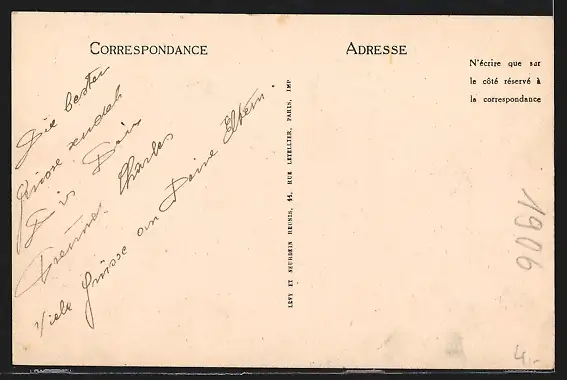 Personenbezogene Daten auf der Rückseite der Karte wurden durch blauen Textmarker unkenntlich gemacht. Die blauen Stellen sind auf die Vorderseite durchgeweicht und wirken sich negativ auf das Postkartenfoto aus