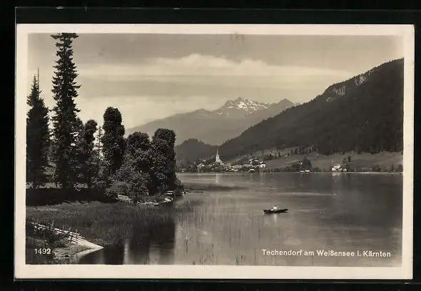 AK Techendorf am Weissensee, Ortsansicht mit Bergen