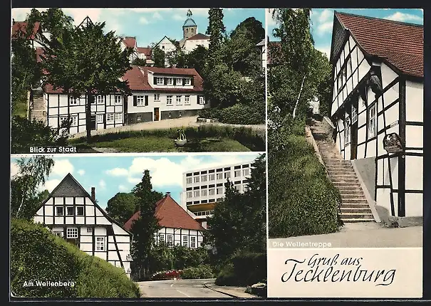AK Tecklenburg, Am Wellenberg, Wellentreppe, Blick zur Stadt