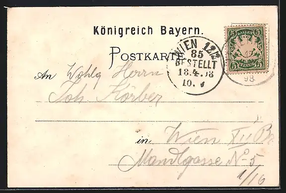 alte Ansichtskarte, gelaufen 1898, Stempelspur, guter Zustand