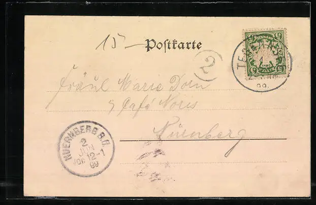 alte Ansichtskarte, gelaufen 1899, guter Zustand