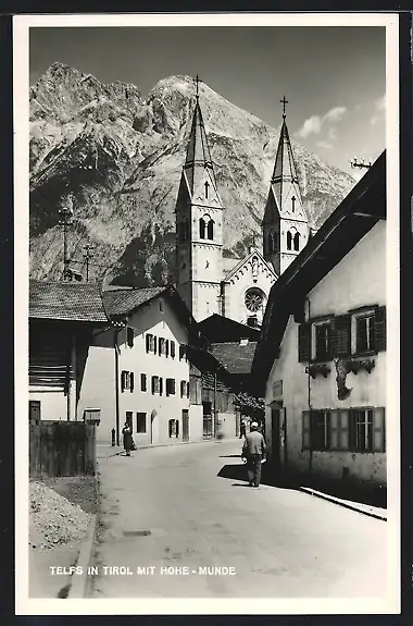 AK Telfs in Tirol, Ortspartie mit Hohe-Munde