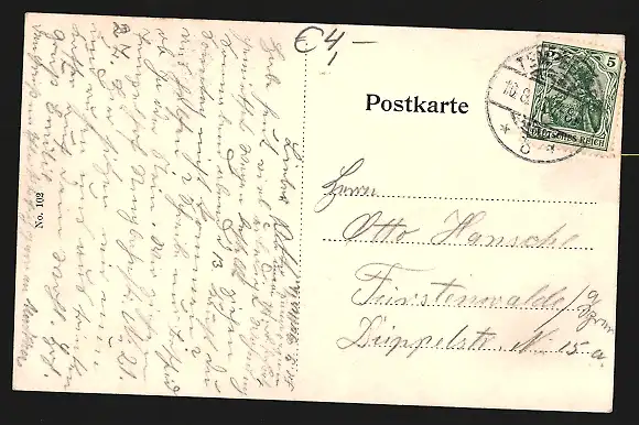 alte Ansichtskarte, gelaufen 1910, guter Zustand