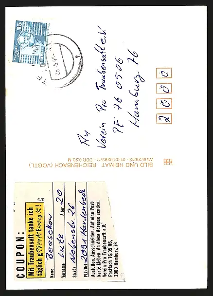 alte Ansichtskarte, gelaufen 1990, guter Zustand