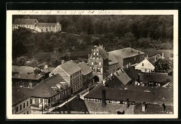 AK Templin, Mühlentor und Bürgergarten aus der Vogelschau