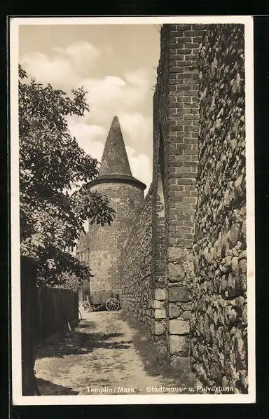 AK Templin i. Mark, Stadtmauer und Pulverturm
