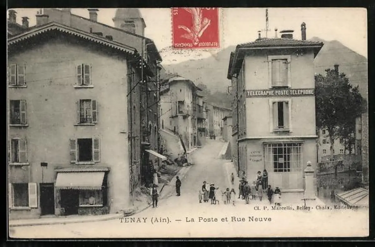 AK Tenay /Ain, La Poste et Rue Neuve