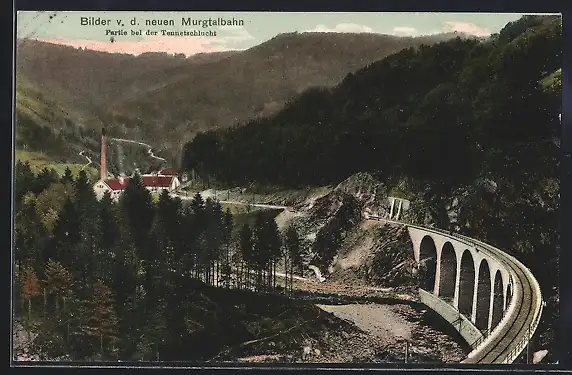 AK Tennetschlucht /Murgtalbahn, Ortspartie mit Viadukt aus der Vogelschau