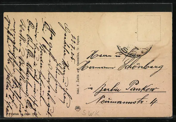 alte Ansichtskarte, gelaufen, Briefmarke entfernt, guter Zustand
