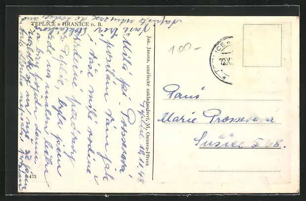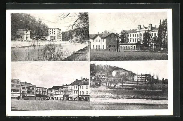AK Teplice a Hranice, Häuser und Marktplatz