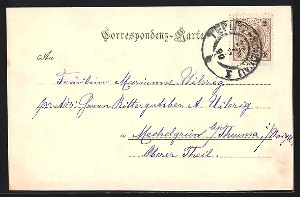 alte Ansichtskarte, gelaufen 1899, guter Zustand