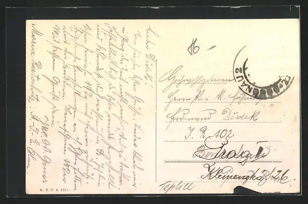 alte Ansichtskarte, gelaufen, Briefmarke entfernt, guter Zustand