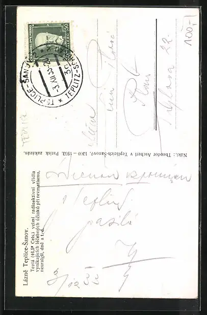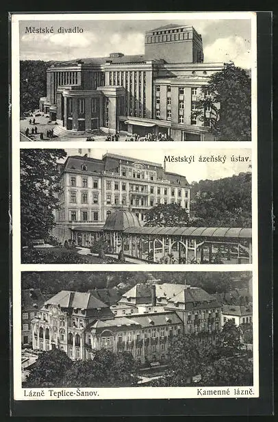 AK Teplitz Schönau / Teplice-Sanov, Kamenné lázne, Mestské divadlo