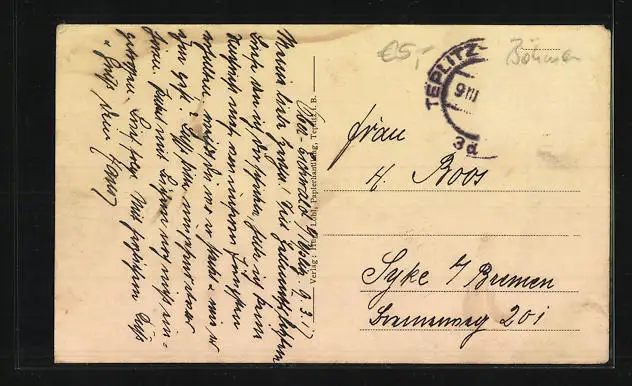 alte Ansichtskarte, gelaufen 1917, Briefmarke entfernt, rückseitig Oberflächenschaden, guter Zustand
