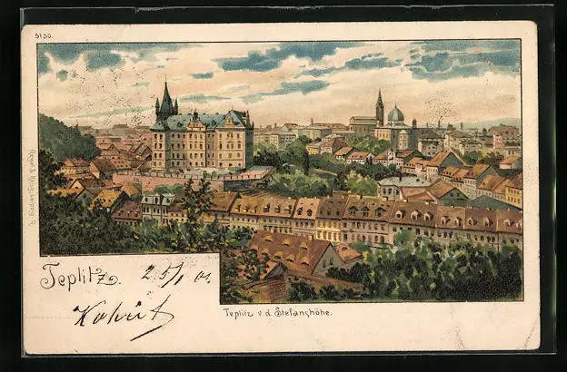 AK Teplitz, Teilansicht von der Stefanshöhe