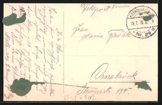 alte Ansichtskarte, gelaufen 1916, rückseitig Klebe- und Papierreste, guter Zustand