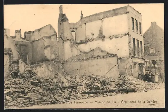 AK Termonde, Destruction, Marché au Lin, Coté pont de la Dendre