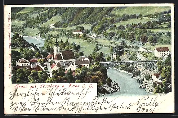 AK Ternberg a. Enns, Teilansicht mit Flusspartie aus der Vogelschau