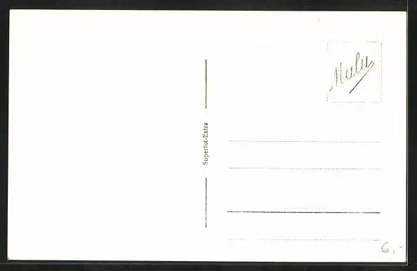 Personenbezogene Daten auf der Rückseite der Karte wurden durch blauen Textmarker unkenntlich gemacht. Die blauen Stellen sind auf die Vorderseite durchgeweicht und wirken sich negativ auf das Postkartenfoto aus