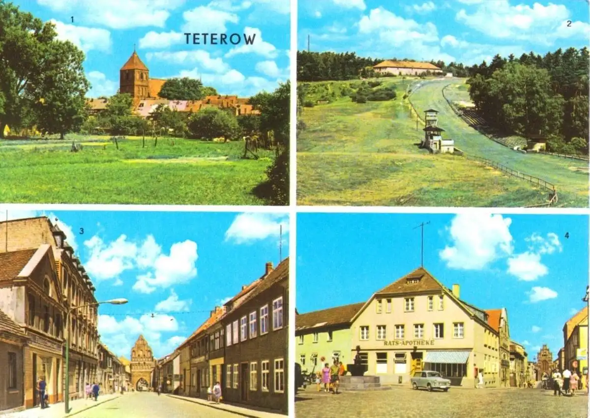 Ansichtskarte Teterow vier Abb. - Teilansicht, Bergring, Otto-Grotewohl-Str., Wilhelm-Pieck-Str. Erhaltung I-II postalisch gelaufen, gestempelt: unleserlich Druckvermerk: 1973 Herstellungsland: DDR Verlag: VEB Bild und Heimat, Reichenbach i. V. - 01 03 0021