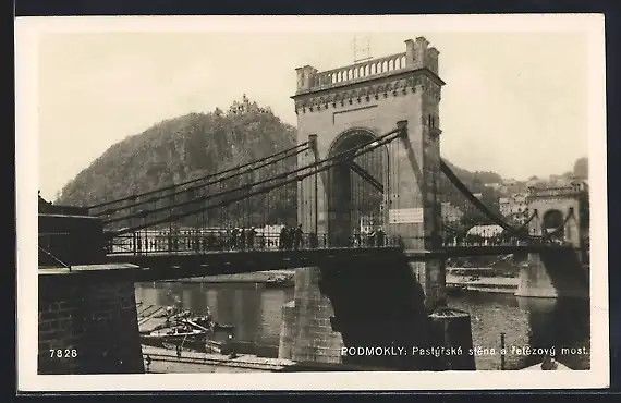 AK Tetschen-Bodenbach-Decin, Kettenbrücke und Schäferwand