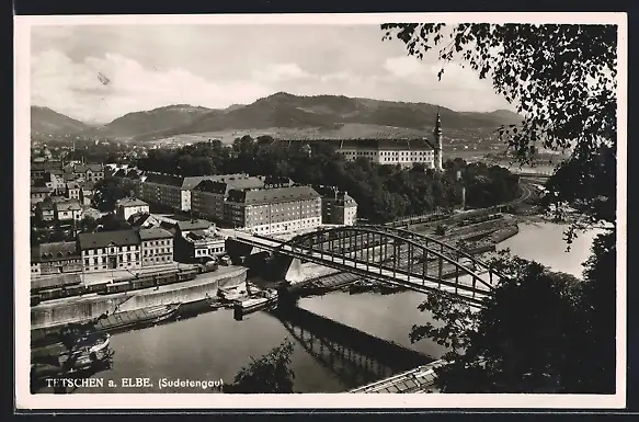 AK Tetschen a. Elbe, Schloss mit Brücke