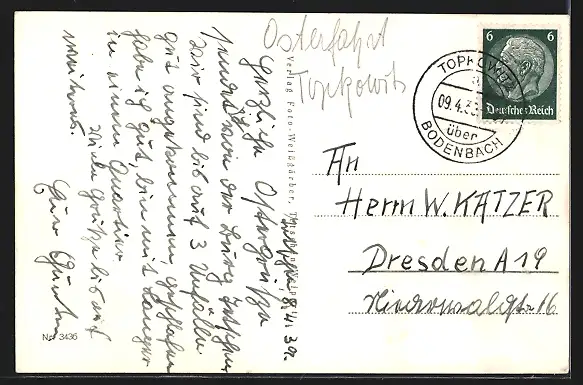 alte Ansichtskarte, gelaufen 1939, guter Zustand