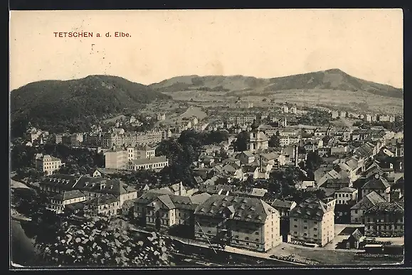 AK Tetschen a. d. Elbe, Teilansicht mit Kirche