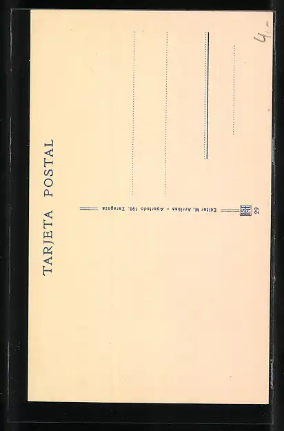 Personenbezogene Daten auf der Rückseite der Karte wurden durch blauen Textmarker unkenntlich gemacht. Die blauen Stellen sind auf die Vorderseite durchgeweicht und wirken sich negativ auf das Postkartenfoto aus