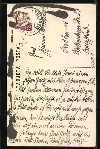 alte Ansichtskarte, gelaufen, rückseitig Klebe- und Papierreste, guter Zustand