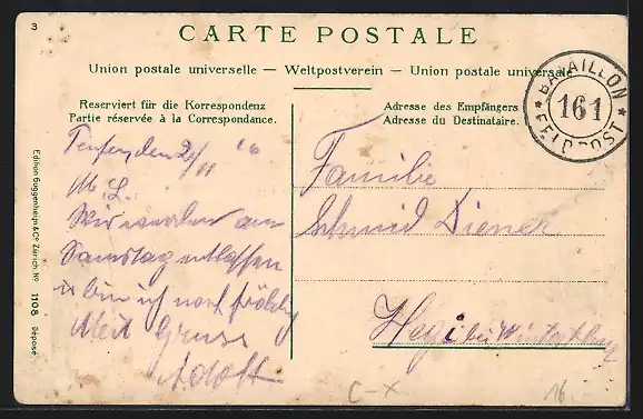 alte Ansichtskarte, gelaufen, Stecknadellöcher unten li. und oben re., guter Zustand