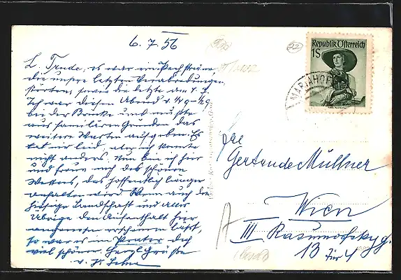 gelaufen 1956, Eckknicke re. unten, guter Zustand
