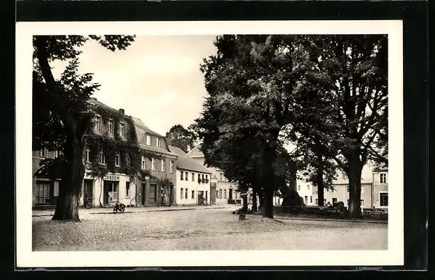 AK Teupitz bei Königs Wusterhausen, Platzpartie mit Denkmal