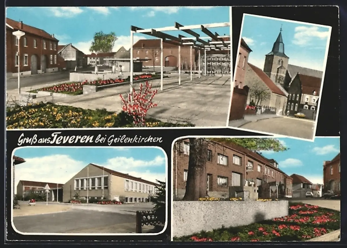 AK Teveren /Geilenkirchen, Ortspartie mit Kirche, Denkmal