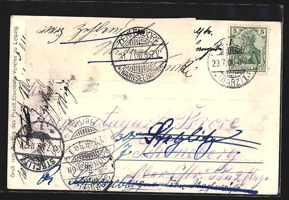 gelaufen 1906, rückseitig Klebe- und Papierreste, guter Zustand