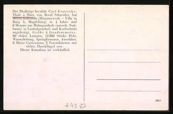 AK Thale a. Harz, Miniaturwerk Villa in Burg b. Magdeburg von Carl Goerecke