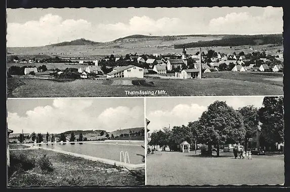 AK Thalmässing /Mfr., Ortsansicht, Schwimmbad, Strassenpartie