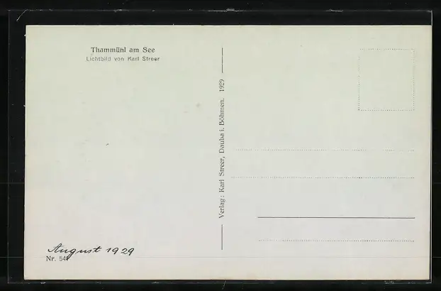 Personenbezogene Daten auf der Rückseite der Karte wurden durch blauen Textmarker unkenntlich gemacht. Die blauen Stellen sind auf die Vorderseite durchgeweicht und wirken sich negativ auf das Postkartenfoto aus