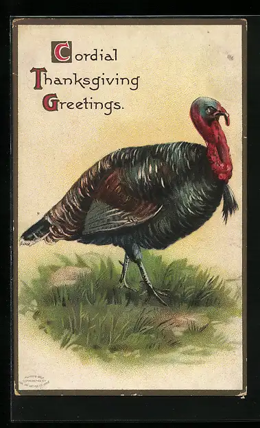 AK Thanksgiving Greetings, Truthahn auf der Wiese