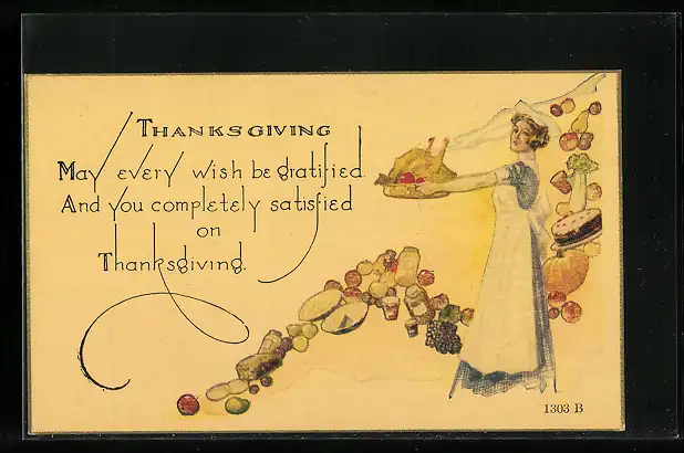 AK Thanksgiving, Köchin trägt einen Truthahn-Braten