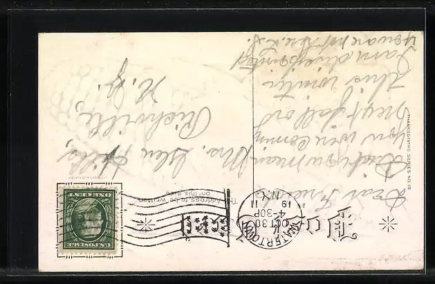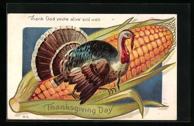 AK Thanksgiving, Truthahn vor einem Maiskolben