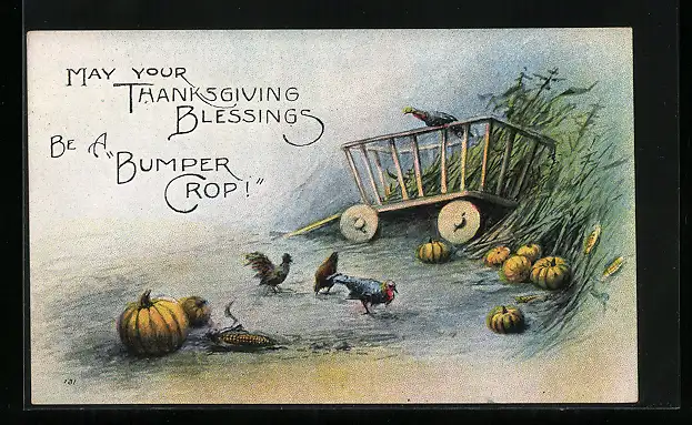 AK Thanksgiving, Truthahn vor einem umgestürzten Karren