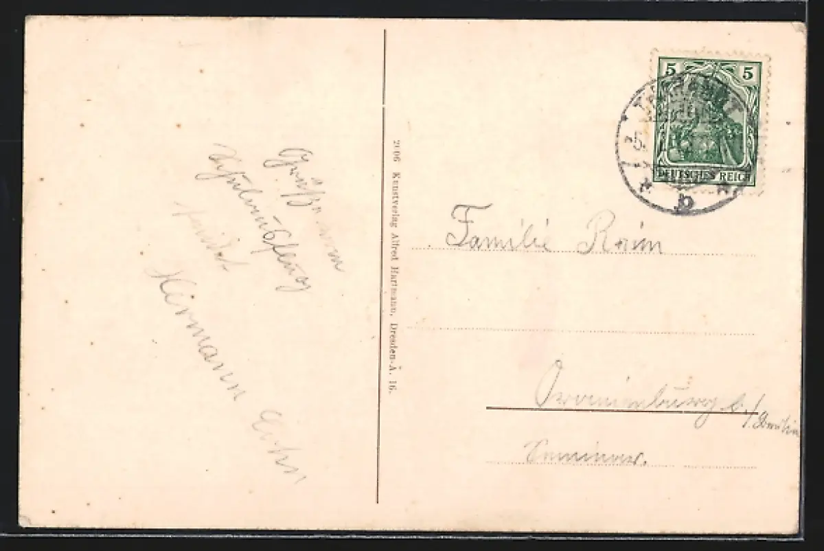 alte Ansichtskarte, gelaufen 1912, Eckknicke re. oben, guter Zustand