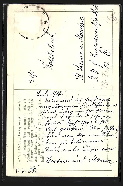 gelaufen 1935, Briefmarke entfernt, rückseitig Oberflächenschaden, Eckknick re. unten, guter Zustand