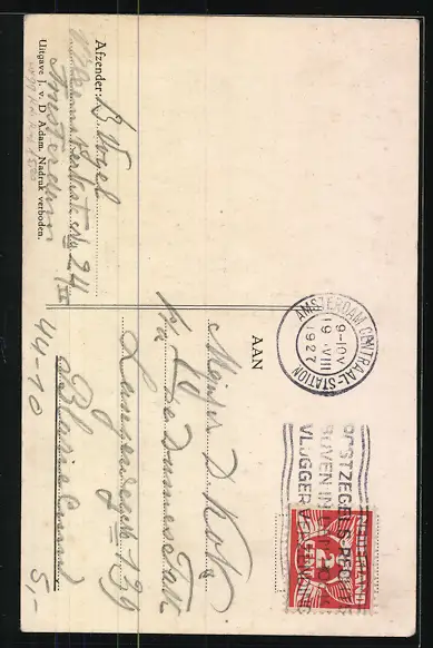 Personenbezogene Daten auf der Rückseite der Karte wurden durch blauen Textmarker unkenntlich gemacht. Die blauen Stellen sind auf die Vorderseite durchgeweicht und wirken sich negativ auf das Postkartenfoto aus